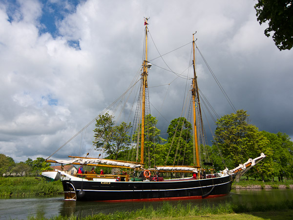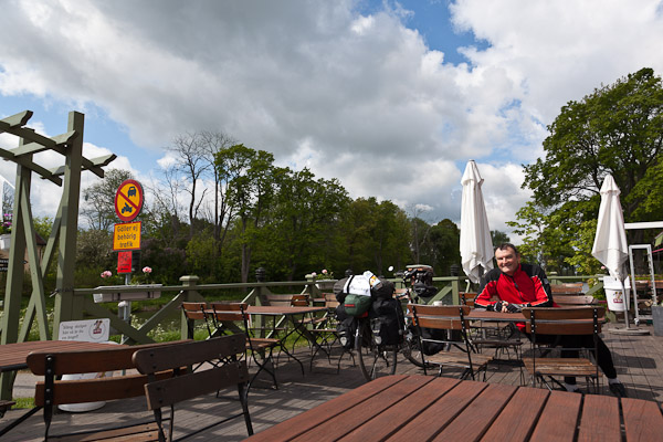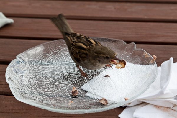 At the Göta Kanal. I left my chair only to take an image of the ship. The sparrow saw his change - and took it (my Kuchen!!!))