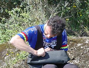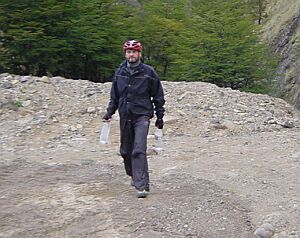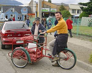 After we reached Coyhaique, we decided to settle down and build our own business, using our cycling skills. Here you see me serving our first client with some potatos. Good-bye Consulting...