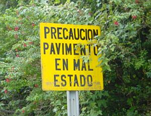 Again, this does not compute! So back on the real roads: "Caution - road surface is in bad condition". As if our body hasn't felt this already.