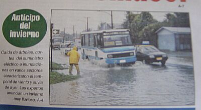 03/16 We took a bus from San Martin de los Andes to Temuco. And from Temuco to Santiago de Chile. Familiar with the Spanish language, the newspaper article will tell you about the weather conditions in the region (Winter is coming early). But I think the picture expresses the same very clearly, too