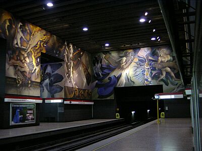 03/17 The underground station Universidad de Santiago. The murals are by the local artist Mario Toral.
