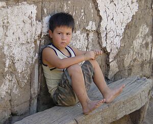 03/20 And we were welcomed by this young boy sitting at the Calle Largo. He looks at us in disbelief, but we could prove that we were in a good mission (with a Müsliriegel traded for this picture).