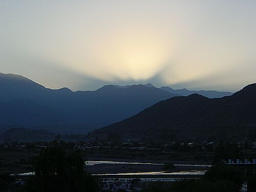 03/22 So this will be the day, where we will master the pass: Christo Redentor at an altitude of 3155 m (10351 feet). As we got up early, we hit the road at 7am sharp. The sunrise awarded us.