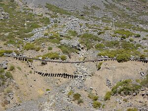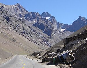 03/22 In the past, people had take incredible efforts to build a railroad over the Andes between Los Andes and Mendoza. But as it has become unprofitable, the private owner drops it, leaving a 300 km long memorial path of the sweat, people must have produced when building the route. Nowadays, many parts have collapsed, like the part you see on the picture below.