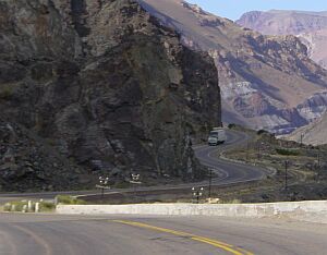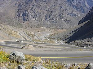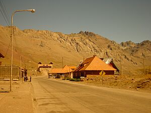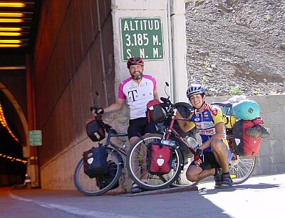 At the top of the mountain, one have to make his way through this tunnel. A Chilean guard gave us a lift in his Pickup.