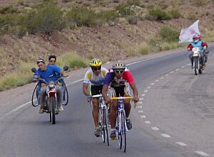03/23 When approaching Uspallata, we meet a bicycle race. I tried to compete, but these guys did not play fair: they lack mudguards, illumination and the bell.