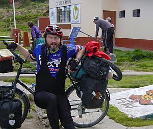 04/17 I reached the Peruan border! This is the best picture, the customs officer was able to shoot. I have to duck, to be in the picture.