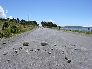 04/17 This day, Peru was on strike. The roads were blocked by big rocks, but people let me and my bicycle pass.