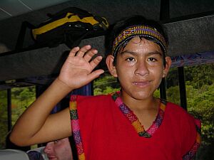 04/24 This native boy managed to run downhill faster then our bus drove by taking shortcuts trough the jungle. Later he was rewarded by the passengers.